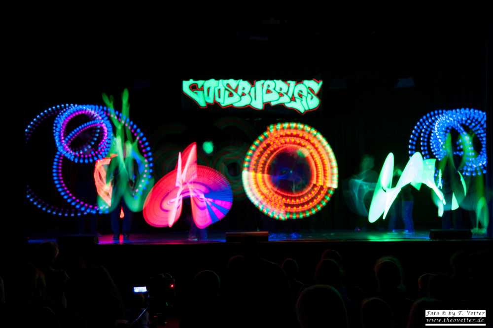 Diese Schows setzen sich prinzipell aus den selben Elementen wie oben zusammen, nur eben im Dunkeln leuchtend oder brennend.